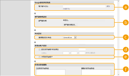 如果啟用 [設定/註冊] [網路設定] [Google雲端列印設定],可指定 Google Cloud Print 電子郵件位址以連結 Google Cloud Print。