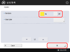 [Use Cache]에 대해 [On]을 선택하고 → [OK]를 누릅니다.
