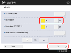 [Security]를 누르고 → [Use JavaScript]에 대해 [On]을 선택하고 → [OK]를 선택합니다.