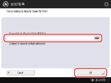 [Security] → [Server Addr. to Allow for Simple PDF Print]을 누릅니다.