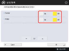 [Exit Sleep Mode When Displ. Web Access Scrn]을 누르고 → 절전 모드 종료 설정을 지정합니다.