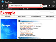 문자 입력에 대한 지침은 "사용자 안내서"를 참조하십시오. 웹 페이지의 입력 영역에 따라 키보드의 텍스트 필드에 여러 입력 줄이 표시될 수 있습니다. 웹 페이지 또는 이미지의 크기에 따라 웹 페이지가 제대로 표시되지 않거나 오류 메시지가 나타날 수 있습니다. 이미지 크기에 따라 GIF 애니메이션을 로드하는 데 시간이 약간 걸릴 수 있습니다. 여러 창이 열린 경우 창이 세분화되지 않고 URL이 입력한 순서대로 저장됩니다. |