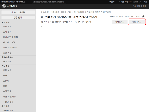 [개별 가져오기/내보내기]에 대해 [웹브라우저 즐겨찾기]를 클릭합니다.