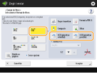 Si seleccioneu <PDF> o <XPS> com a format de fitxer, podeu establir <Compacte> i <OCR (text per a cerques)> alhora. En aquest cas, apareix <PDF (Compacte)> o <XPS (Compacte)> com a format de fitxer a la pantalla de funcions bàsiques de lectura i enviament.