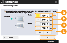 Når du igen åbner skærmbilledet <Justér billedplacering> igen, når du har lukket det skærmbillede ved at trykke på <OK>, returneres værdierne til <0>. Men den justerede værdi er alligevel aktiv. Gentager du punkterne, skal du aflæse den nye værdi fra registreringsmærkerne på det nye testprint og indtaste den nye værdi.