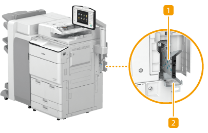 Jos viesti <E602-0001> ilmestyy kosketusnäyttöön kun laite käynnistyy, kiintolevyä ei ehkä ole asetettu kiintolevyn pitimeen. Katkaise laitteen virta ja tarkista että päävirran merkkivalo käyttöpaneelissa ei pala, ja tarkista sen jälkeen onko kiintolevy asetettu. Jos häiriöviesti ilmestyy uudelleen sen jälkeen kun olet asettanut kiintolevyn oikein, ota yhteys paikalliseen valtuutettuun Canon-jälleenmyyjään.