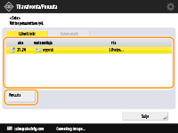 (Seis) käyttöpaneelissa, kun lähetys-/tulostustyötä käsitellään ja kohteeseen <Lähetä työt>/<Tulostustyöt> vievä näyttö on esillä, meneillään oleva lähetys-/tulostustyö keskeytetään ja <Lähetä työt>/<Tulostustyöt> tulee esiin.