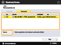 (Seis) käyttöpaneelissa, kun lähetys-/faksityötä käsitellään ja <Faksi>- / <Skannaa ja lähetä> -näyttö on esillä, esiin tulee ponnahdusikkuna, joka peruuttaa meneillään olevan työn. Kun useita töitä on kesken, voit määrittää, mikä niistä peruutetaan: viimeksi tehty vai työ, jota ollaan parhaillaan lähettämässä. (<Peruutettava työ kun Seis painetaan>)Jos käyttöpaneelin
