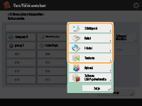 Jos LDAP-palvelin on jo tallennettu laitteeseen (LDAP-palvelimen rekisteröiminen), voit hakea vastanottajia ja tallentaa ne pikavalintapainikkeisiin. Valitse <Vast./Välitä asetukset>