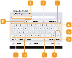 Syötä merkit kosketusnäytön painikkeilla ikkunoissa, joihin on syötettävä aakkosnumeerisia merkkejä. Voit syöttää numerot myös käyttöpaneelin numeropainikkeilla (Käyttöpaneeli).