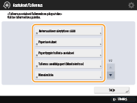 Jos <Aset./Tall.- vakiopainike> ei ole näkyvissä <Päävalikko>-näytössä, valitse /b_in_btn_C0003_29.gif)  <Aloitusnäytön hallinnan asetukset>  <Rajoita toimintonäyttö>  <Aseta>  aseta <Aset./Tall.- vakiopainike> näytettäväksi.