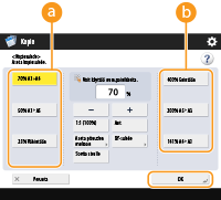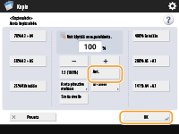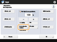 Jos asetat <Aut.>, paperikoko on valittava manuaalisesti. Jos et valitse paperikokoa, kopiosuhde asetetaan automaattisesti vastaamaan paperikasettiin 1 asetun paperin kokoa.