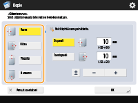 Valitse <Etupuoli> tai <Taustapuoli> ja lisää kunkin reunan leveys.