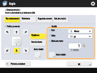 Jos asetat kohdan <Kopiosarjojen numerointiasetukset> asetukseksi <Kyllä>, määritettävissä olevat asetukset vaihtuvat seuraavasti. <Kopiosarjojen numerointiasetukset>