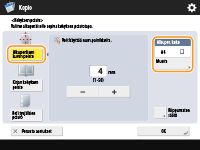 Kun kopioit alkuperäisiä jotka ovat kooltaan pienempiä kuin tulostuspaperi, alkuperäisten reunaviivat saattaavat näkyä kopioidussa kuvassa. Tummat reunat saattaavat ilmestyä kopioitaessa paksuja kirjoja. <Kehyksen poisto> -toiminnolla voit poistaa nämä kehykset ja tummat reunat. Voit asettaa laitteen myös niin että se ei kopioi alkuperäisessä olevia rei'itysreikiä.