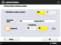 Linjan nimi: Kun <Lähettäjän nimi> -asetuksena on <Ei asetuksia> eikä käyttäjää ole todennettu ja käyttäjänimi on tallennettu linjalle, jota käytetään faksin lähettämiseen