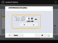Jos käytät lisävarusteena saatavaa vihkoviimeistelijää ja huomaat, että taitteet eivät ole tarkalleen vihkon keskellä, voi säätää vihkonidonnan taiton paikkaa tällä asetuksella.