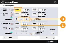 Paina <-> tai <+> asetukselle <Taustapuoli> kohdassa <Etureunan kohdistus> ja syötä kuvan siirron arvo.