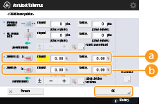 Aseta suurennus-/pienennyssuhde (%) <Zoomaus (a)> ja <Zoomi (b)> -kohtaan <Säädä kuvan paikka> -näytössä  valitse <OK>.