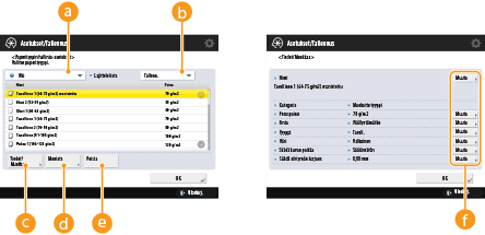 Kun tallennat muokatun paperityypin, et voi määrittää paperilähdettä. Lisätietoja paperilähteen tallentamisesta on kohdassa Paperin koon ja tyypin määrittäminen paperisäiliölle/kasetille.