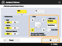 Määritä tulostuspaikka ja alkuperäisen suunta ja valitse <OK>.