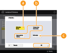 Alusta data ja asetukset poistaaksesi datan kuten Lokeroon tallennetut tiedostot, Osoitekirjan tiedot, tai kopio- ja tulostuslokien tiedot. Kaiken tietojen/asetusten alustaminen