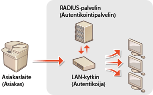 Verkkoympäristössä joka käyttää IEEE 802.1X-autentikointia, luvaton pääsy on estetty LAN-kytkimellä (autentikoija) joka myöntää pääsyoikeudet vain asiakaslaitteille (supplikanteille) jotka autentikointipalvelin (RADIUS-palvelin) on valtuuttanut. Jotta tämä laite voidaan liittää IEEE 802.1X-verkkoon, laitteeseen on koostettava asetukset kuten autentikointimenetelmä jota autentikointipalvelin käyttää. Näiden asetusten määrittämiseen tarvitaan pääkäyttäjän tai verkkovastaavan oikeudet.