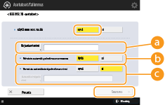 Valitse <Käyttäjänimi> tai <Salasana> ja lisää tiedot. Jos kirjoitat nimen <Käyttäjänimi> -kohtaan, poista <Sama käytt.nimi kuin kirjaant. nimi> -valinta käytöstä.