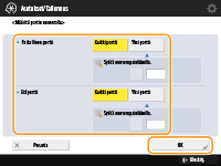 Valitse <Määritä porttinumeron mukaan>, jos haluat käyttää porttinumeroita määrittäessäsi portteja, joissa käytetään IPSec:iä. Käytä IPSec:iä kaikissa porttinumeroissa valitsemalla <Kaikki portit>. Jos haluat käyttää IPSec:iä tietyssä porttinumerossa, valitse <Yksi portti> ja lisää porttinumero. Kun olet määrittänyt portit, valitse <OK>. Määritä tämän laitteen portti kohtaan <Paikallinen portti> ja määritä yhteyslaitteen portti kohtaan <Etäportti>.