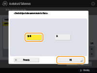 (Asetukset/Tallennus) <Aseta vastaanottaja>  <Osoitekirjan hakunumeroinnin hallinta>  <Kyllä>  <OK>