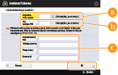 Voit myös tehdä seitsemän numeron syöttämisestä vaatimuksen Järjestelmänvalvojan tunnukselle ja Järjestelmänvalvojan PIN-koodille. Lisätietoja saat paikalliselta valtuutetulta Canon-jälleenmyyjältä.