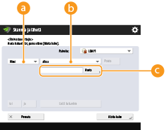 <Alkup. sisällön suunta> valitse <Yläreuna takana> tai <Yläreuna sivulla> alkuperäisen suunnan mukaan valitse <OK>.Useiden vastaanottajien määrittäminen, mukaanlukien faksitJos <Salli faksi skannausja lähetystoiminnassa> -asetuksena on <Kyllä>, voit määrittää faksivastaanottajat skannauksen perustoimintonäytössä (<Näytä faksitoiminto>). Tämä asetus on hyödyllinen kun määritetään useita vastaanottajia mukaanlukien fakseja, kuten tallennettaessa kopiota lähetetystä faksista tiedostopalvelimeen.