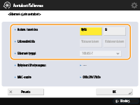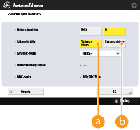 Määritä alalinjan Ethernet-asetukset valitsemalla <Yleisasetukset>  <Verkko> <Alalinjan asetukset> <Ethernet-ajurin asetukset>.