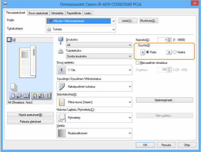 Valitse alkuperäisen suunta sovelluksen tulostusasetuksissa.