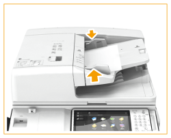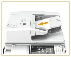Zorg ervoor dat u niet te hard duwt bij het plaatsen van het origineel. Anders wordt het origineel misschien niet goed ingevoerd of treedt een papierstoring op.