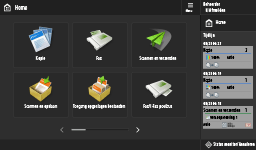 drukt. Het scherm <Home> bevat een lijst met functieknoppen en biedt toegang tot diverse functies. Items op het <Home>-scherm