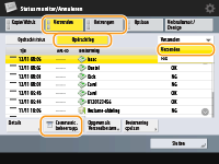 Van documenten die via e-mail zijn verzonden, geeft de lijst de verzendingsresultaten tussen de machine en de mailserver aan, en niet tussen de machine en de bestemming.