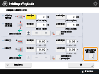 Wanneer u het scherm <Aanpassen beeldpositie> opnieuw opent nadat u dat scherm heeft gesloten door op <OK> te drukken, zijn de waarden op het scherm teruggekeerd naar <0>. De aangepaste waarde is echter nog altijd van kracht. Als u de stappen herhaalt, lees dan de waarden van de registratiemarkeringen op de nieuwe proefpagina in voer de nieuwe waarden in.