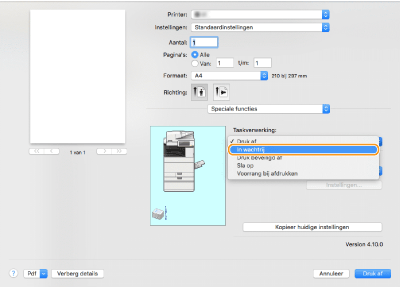 Selecteer [In wachtrij] in [Taakverwerking] van het deelvenster [Speciale functies].