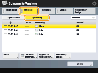 <Opnieuw verzenden> drukt, kunt u de documenten die niet konden worden verzonden/opgeslagen, opnieuw verzenden/opslaan. Om een andere bestemming op te geven, drukt u op <Wijzig bestemming>. Bij documenten met meerdere opgegeven bestemmingen met dezelfde verzend-/opslagmethode, drukt u op <Groepsverzendlijst>, selecteert u een bestemming en drukt u vervolgens op <Opnieuw verzenden> of <Wijzig bestemming>.U kunt documenten opnieuw verzenden/opslaan wanneer <Verwijder mislukte TX opdrachten> is ingesteld op <Uit>. <Verwijder mislukte TX opdrachten>