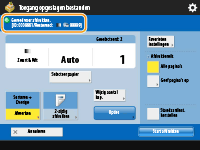 Geeft instellingenstatus weer, zoals het papierformaat om op af te drukken en het aantal afdrukken. Controleer de instellingen om goed te kunnen afdrukken. Om de instellingen te wijzigen, drukt u op de knop onder het weergavegedeelte. Om het aantal afdrukken te wijzigen, voert u met de numerieke toetsen het aantal in.