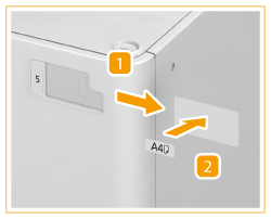 Naklej etykietę z formatem papieru, celem dopasowania nowego formatu papieru do arkusza nośnika.