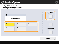 Można zarejestrować maksymalnie pięć najczęściej wykorzystywanych formatów papieru. Zarejestrowane rozmiary papieru są wyświetlane na ekranie wyboru formatu papieru dla szuflady na papier i tacy wielofunkcyjnej (Określanie formatu i typu papieru załadowanego do szuflady/zasobnika na papier lub Określanie formatu i typu papieru załadowanego na tacę wielofunkcyjną).