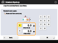 Określ długość strony <X> oraz strony <Y>. Naciśnij na <X> lub <Y>, aby wprowadzić długość poszczególnych stron za pomocą klawiszy numerycznych.
