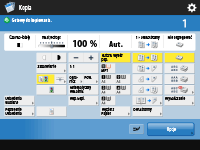 Wyświetla status ustawień, takich jak proporcja kopiowania, format papieru, liczba kopii itd. Aby kopiować prawidłowo należy te ustawienia potwierdzić. Aby zmienić ustawienia, należy nacisnąć na przycisk znajdujący się pod wyświetlaną sekcją.