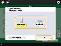 Jeżeli rozmiar wyświetlany w pozycji <Rozm.Oryginału> różni się od rozmiaru oryginału, naciśnij przycisk <Zmień>, aby wybrać rozmiar. Tryb Usuwanie obramowania oryginału można wykorzystywać tylko dla tych oryginałów, których formaty ukażą się na panelu dotykowym.