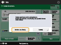 Jeżeli podawanych jest wiele arkuszySkanowanie zostaje zatrzymane, a na ekranie zostanie wyświetlony komunikat. Postępować zgodnie z instrukcjami, aby usunąć zablokowania. Po usunięciu zacięcia zostanie wyświetlony ekran wznawiania zadania. Jeśli urządzenie omyłkowo wykryje podanie kilku arkuszy, naciśnij <Nie wykrywaj pod. wielofunk.>, aby wznowić skanowanie.