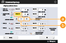 Na ekranie <Regulacja Położenia Obrazu> nacisnąć <-> lub <+> dla <Przednia Strona> w <Położenie lewej krawę.>, aby wprowadzić wartość przesunięcia obrazu.