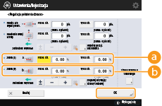 Ustaw współczynnik powiększenia/pomniejszenia (%) dla opcji <Zoom (a)> i <Zoom (b)> na ekranie <Regulacja Położenia Obrazu>  naciśnij <OK>.