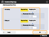 Naciśnij na <Określ Numer Portu>, aby wykorzystać numery portów podczas określania numerów, dla których IPSec ma zastosowanie. Wybierz <Wszystkie Porty>, aby zastosować IPSec dla wszystkich portów. Aby zastosować IPSec dla danego numeru portu, naciśnij na <Pojedyńczy Port> i wprowadź numer portu. Po określeniu portów, naciśnij na <OK>. Określ porty tego urządzenia w <Port Lokalny> oraz określ adres porty drugiego urządzenia do komunikacji w <Zdalny port>.